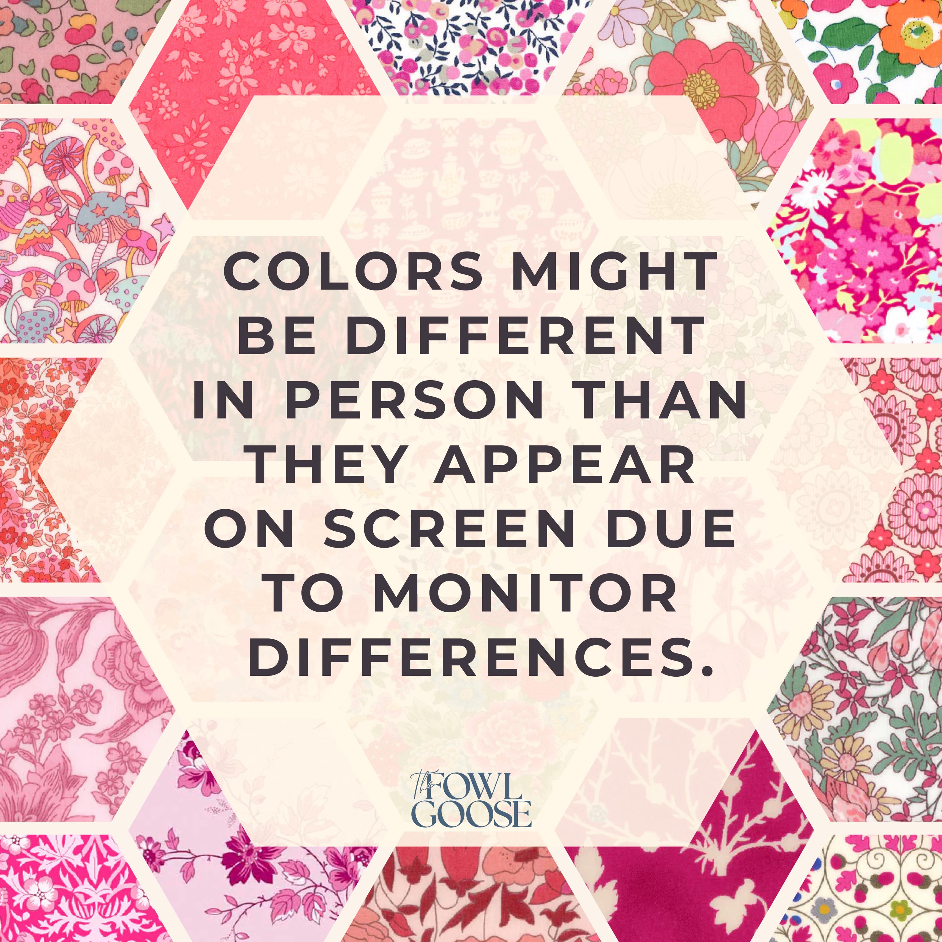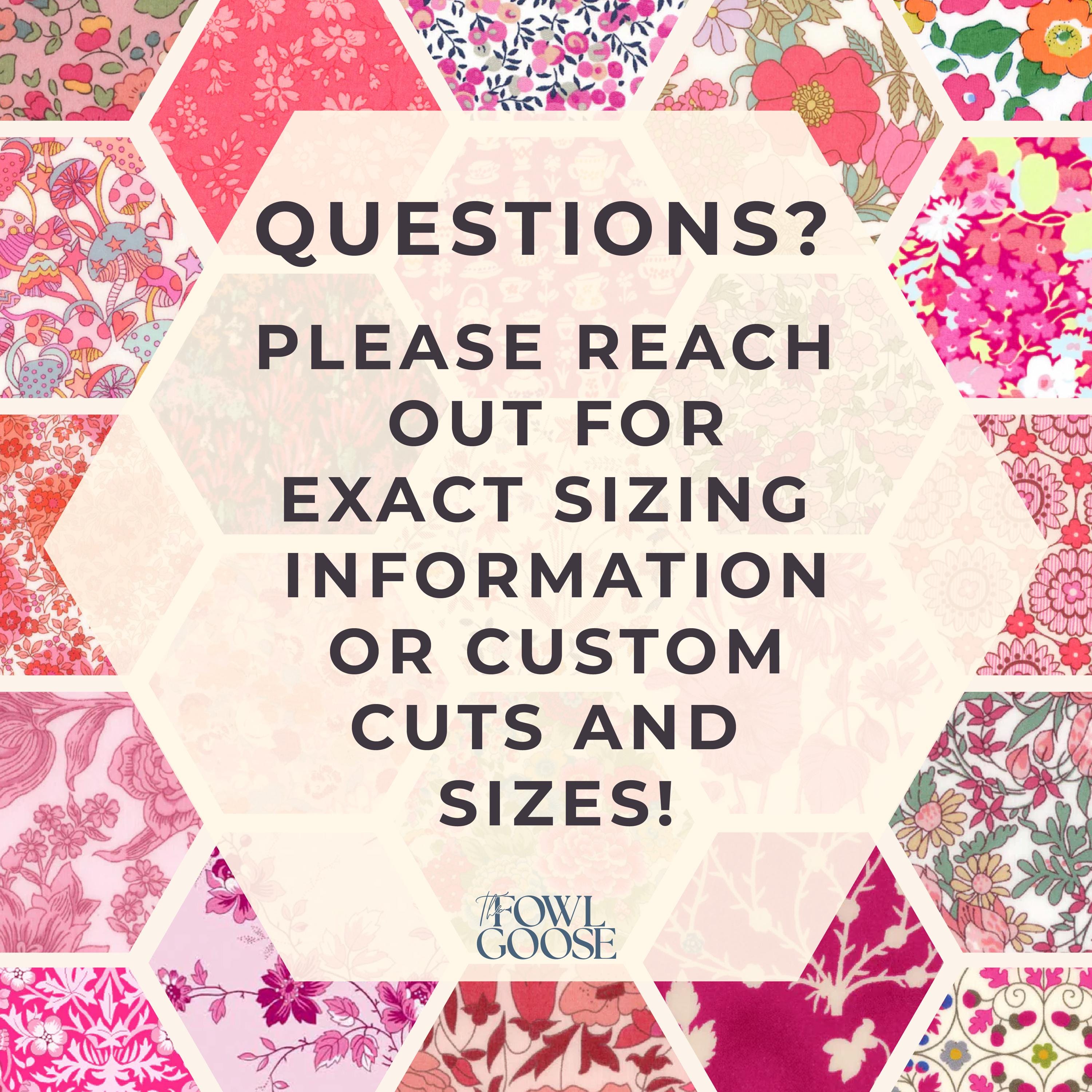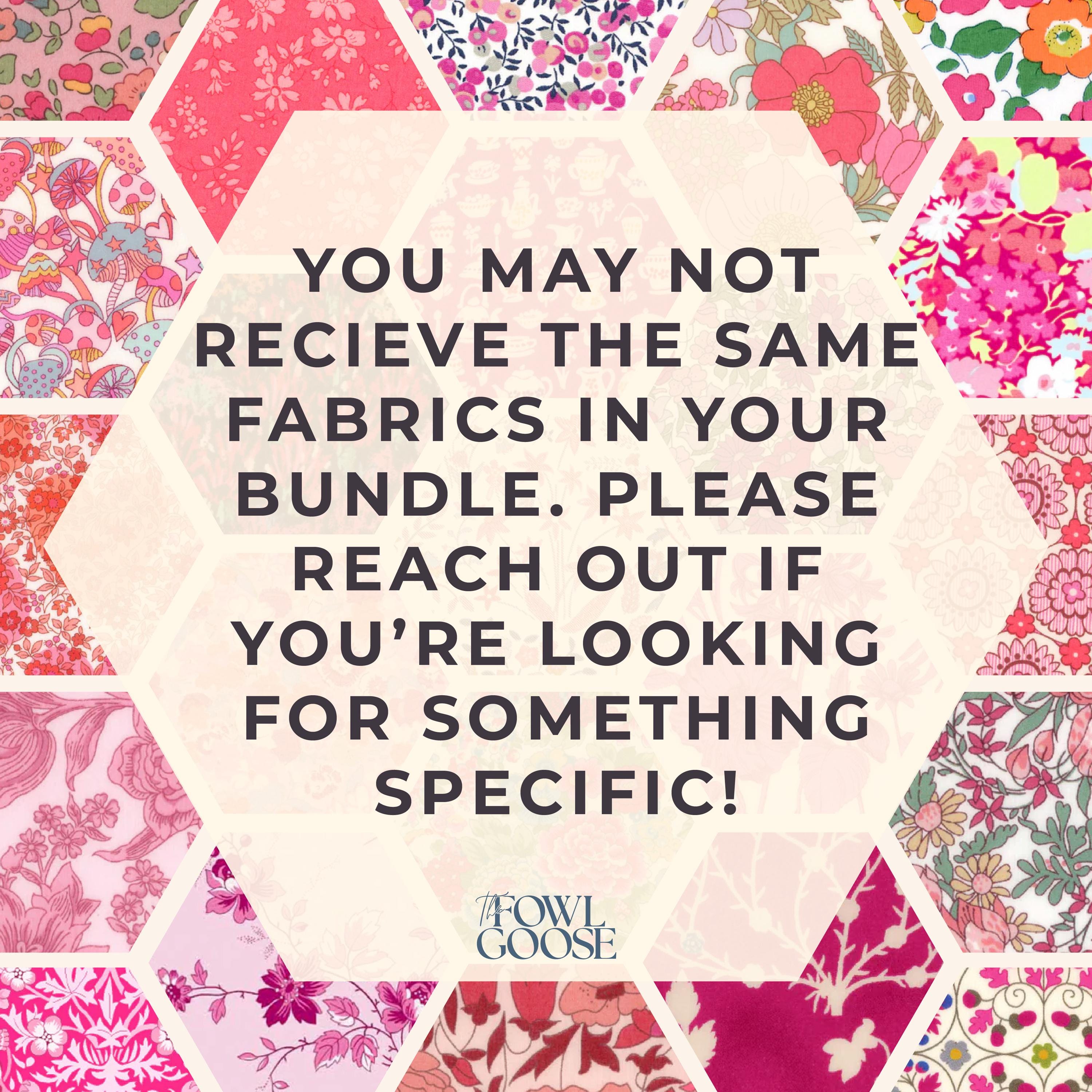 This listing is for Liberty Tana Lawn Cotton in dark pink colors - either 1/4" (.25") or 3/8" (.375"). These fabrics have been chosen because the majority color is dark pink, they will include other colors in the print. Prints pictured may not be included in your set.