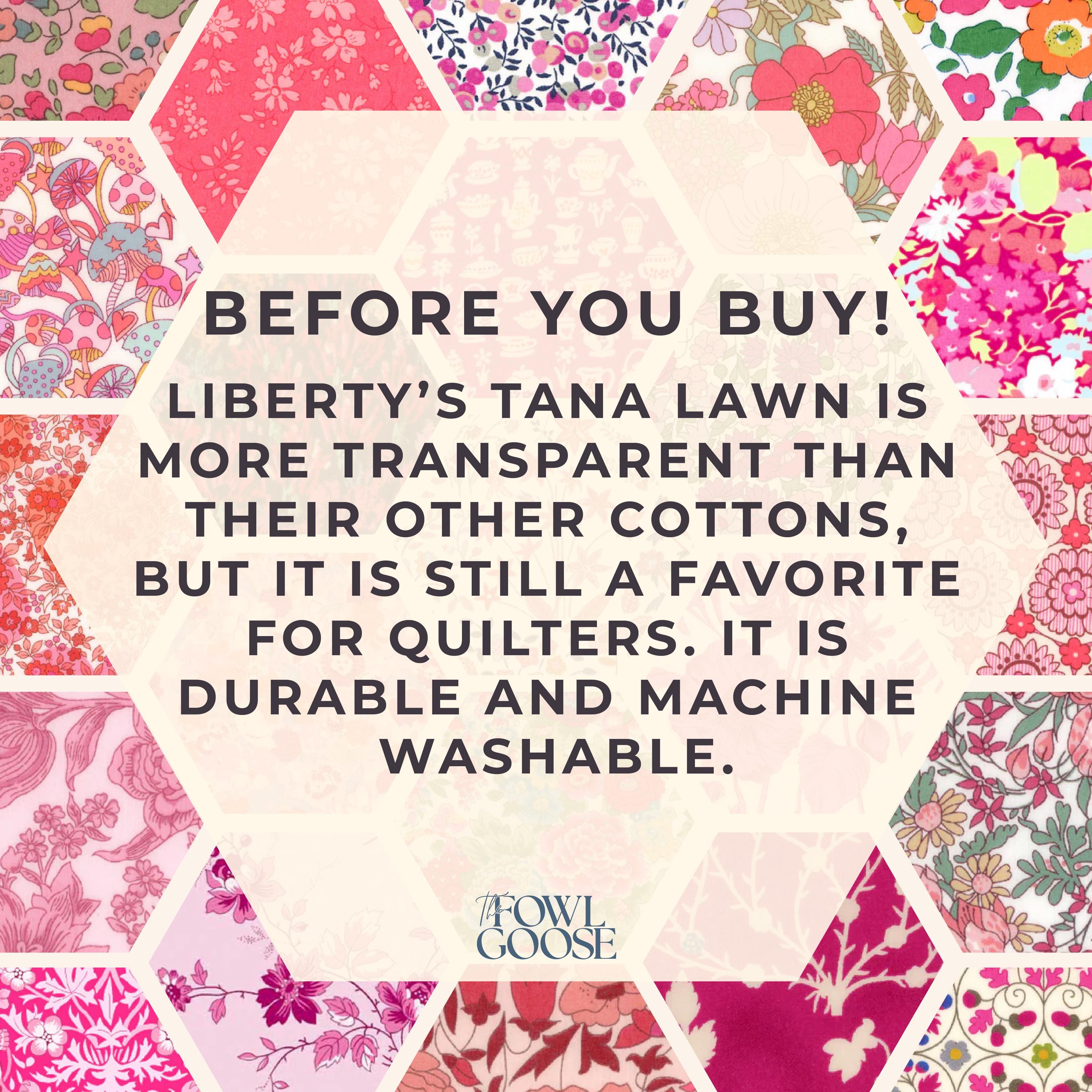 Please note: Tana Lawn is more transparent, although still incredibly durable and machine washable! It is a favorite among quilters, alongside their Lasenby Cotton.