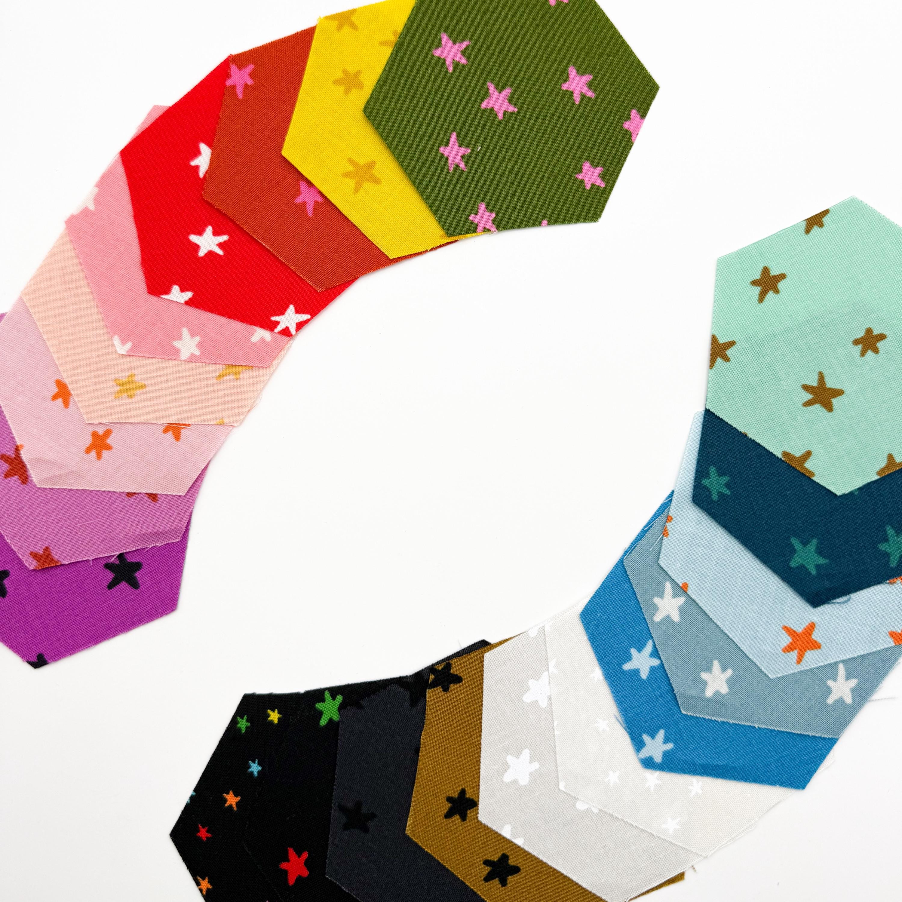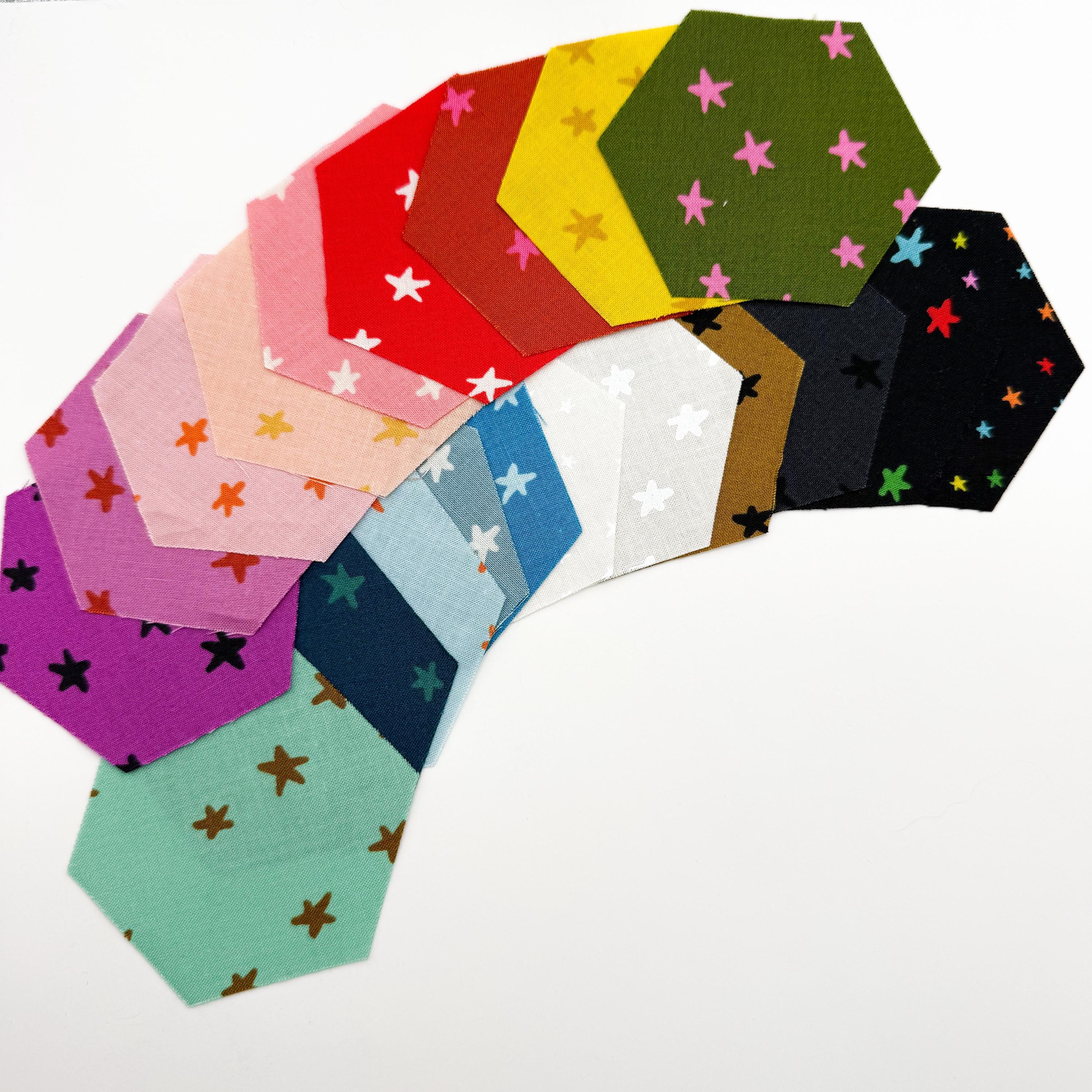 EPP Hexie in New Starry Set of 50 Ruby Star Society Fabric | Hexagon 1/4 or 3/8