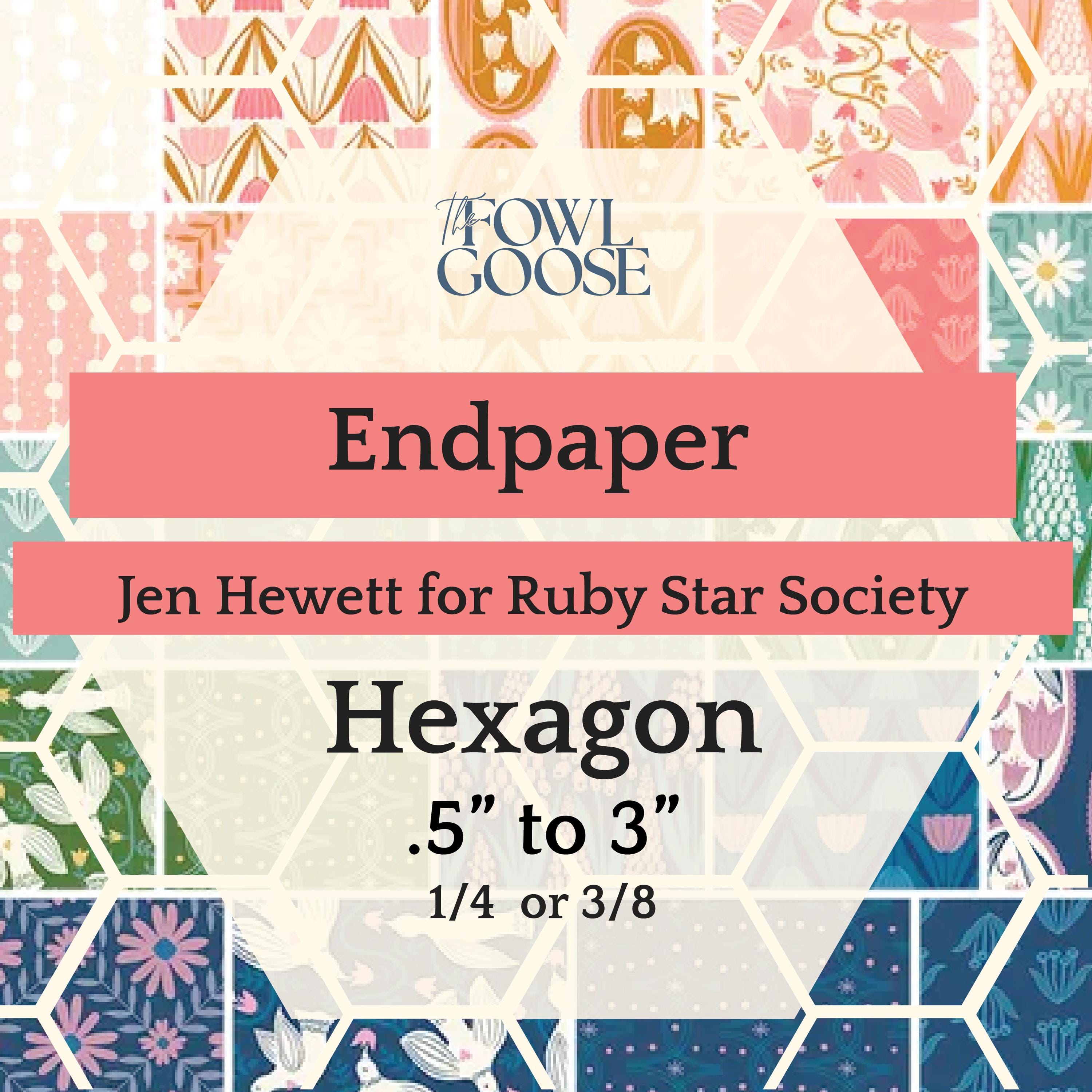 This listing is for a set of 50 hexagons from Ruby Star Society in End Paper - either 1/4" (.25") or 3/8" (.375"). Prints pictured may not be included in your set.