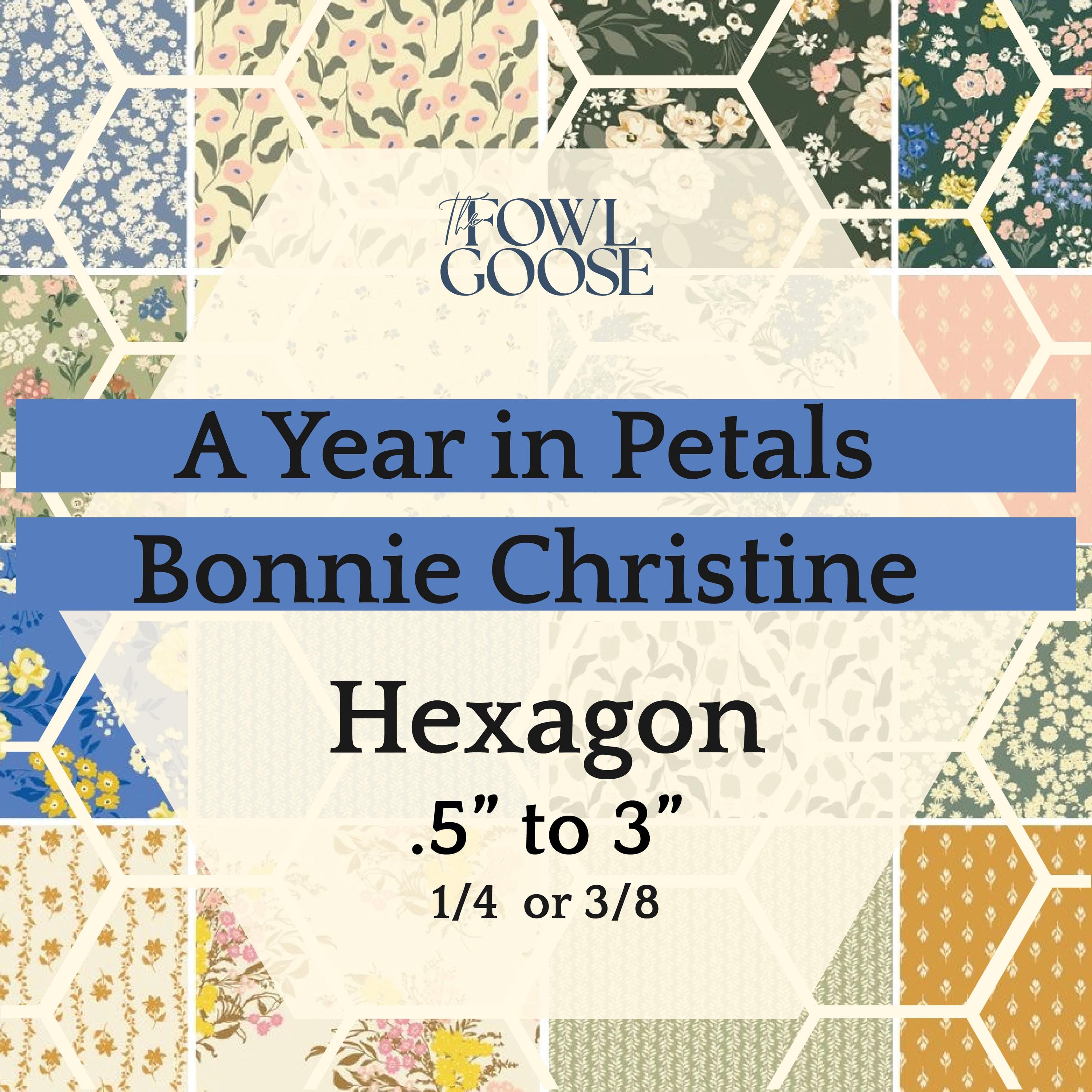 EPP Hexie in A Year in Petals Set of 50 Bonnie Christine Fabric | Hexagon 1/4 or 3/8