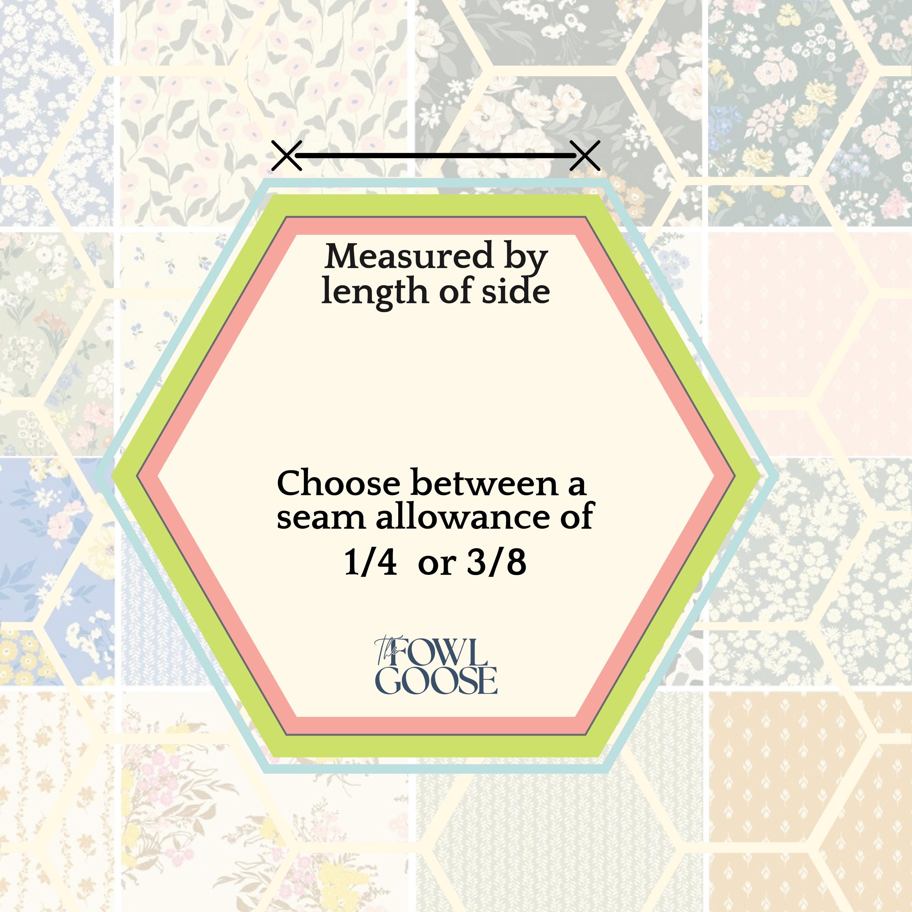 This listing is for a set of 50 hexagons from Bonnie Christine in A Year in Petals - either 1/4" (.25") or 3/8" (.375"). Prints pictured may not be included in your set.