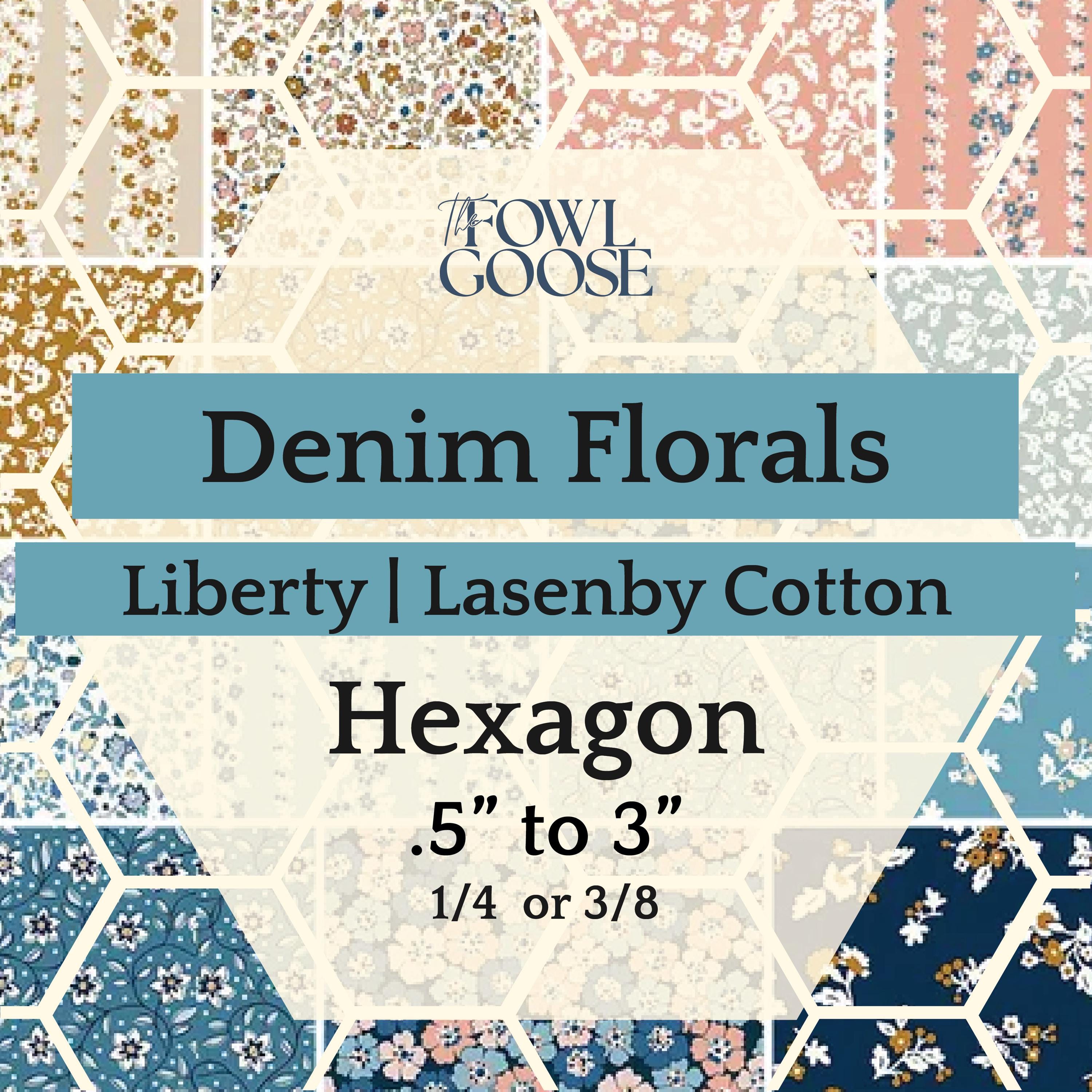 EPP Hexie in Denim Florals Set of 50 Liberty Fabrics | Hexagon 1/4 or 3/8