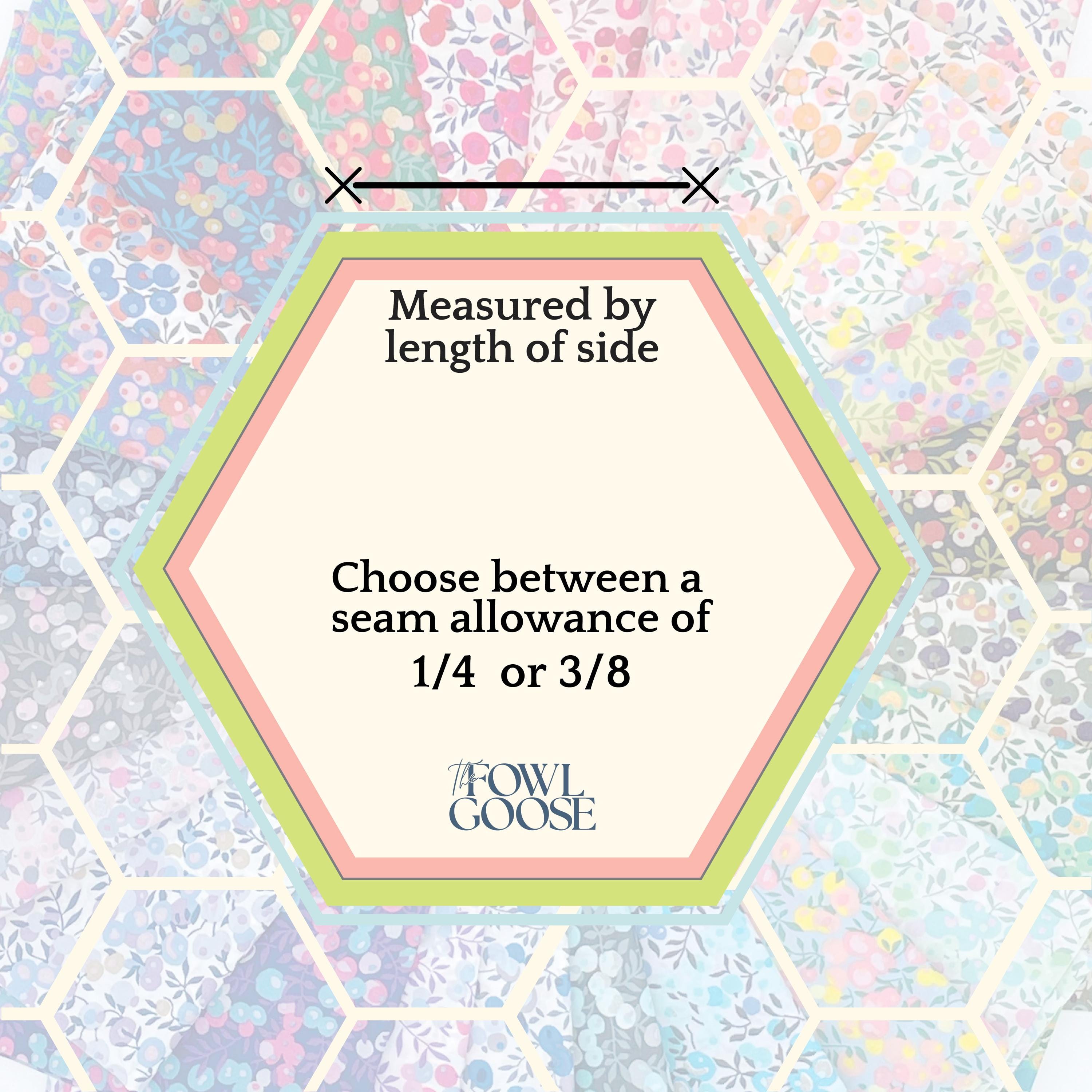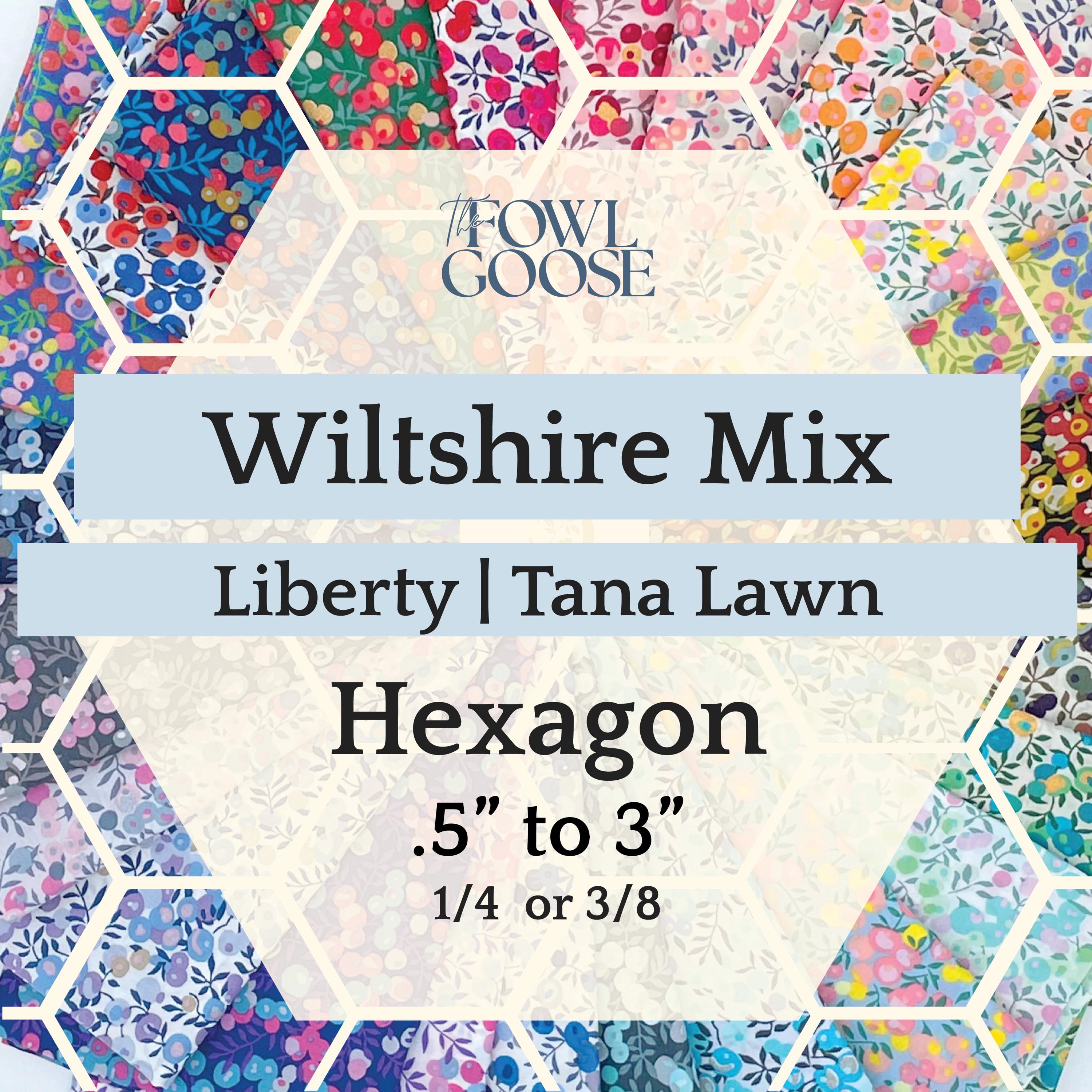 This listing is for a random selection of Liberty Tana Lawn Cotton hexagons in Wiltshire - either 1/4" (.25") or 3/8" (.375"). Prints pictured may not be included in your set.