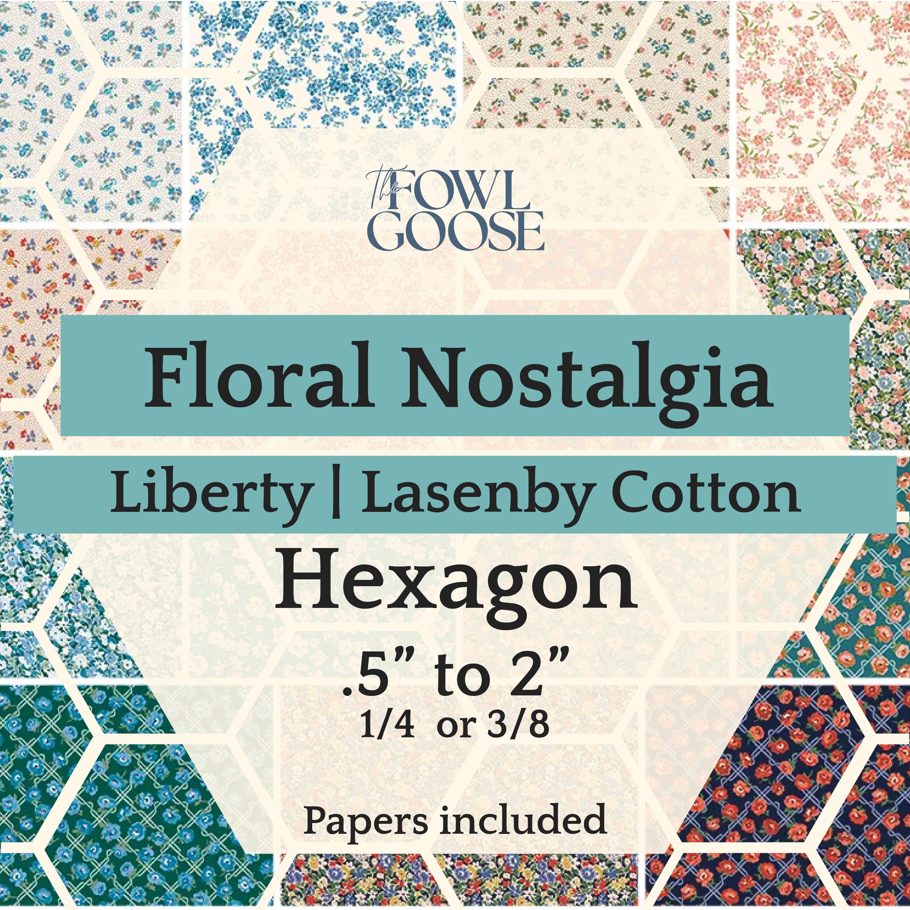 This listing is for a set of 50 hexagons from Liberty Fabrics in Floral Nostalgia - either 1/4" (.25") or 3/8" (.375"). Prints pictured may not be included in your set.