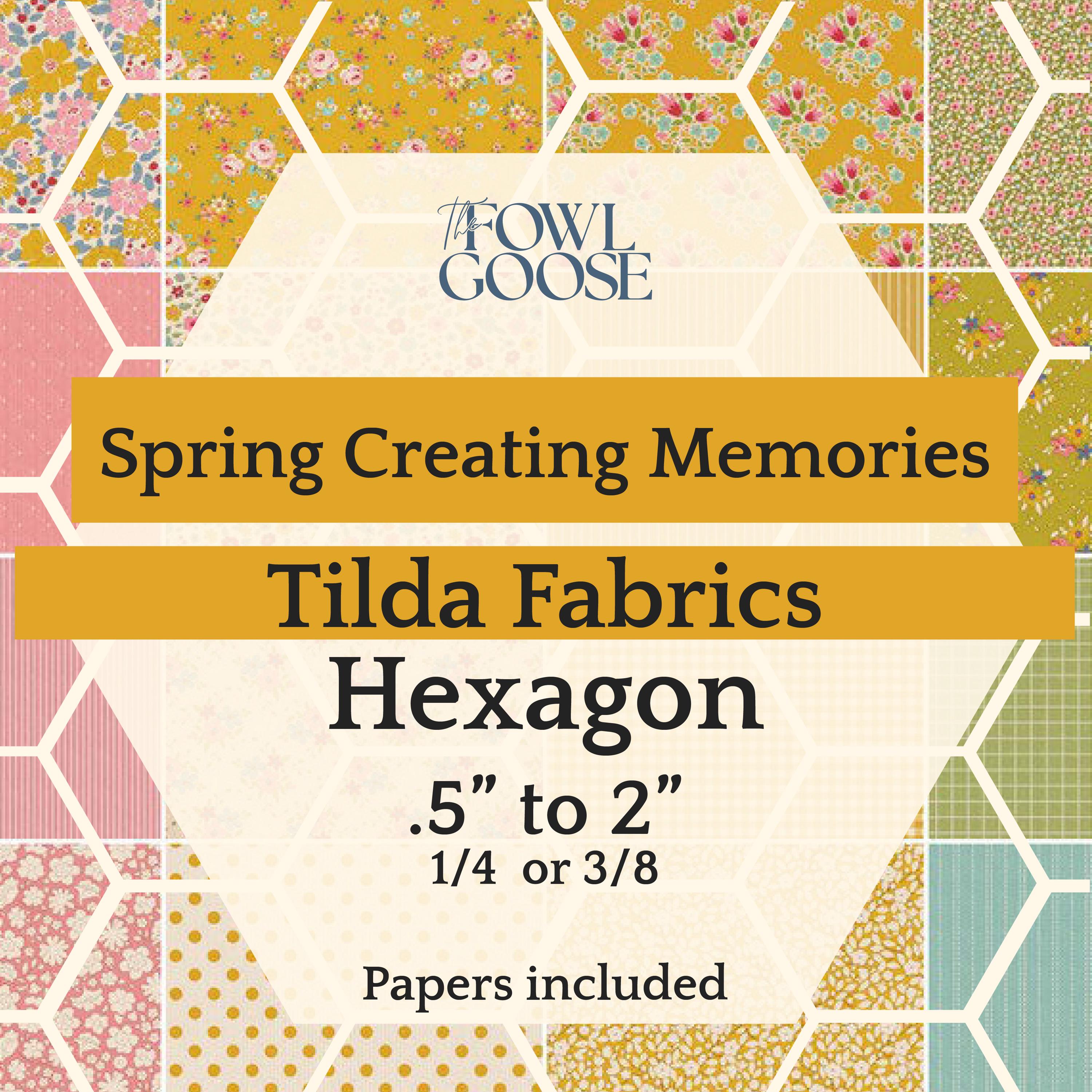 This listing is for a set of 48 hexagons from Tilda Fabrics in Spring Creating Memories - either 1/4" (.25") or 3/8" (.375").