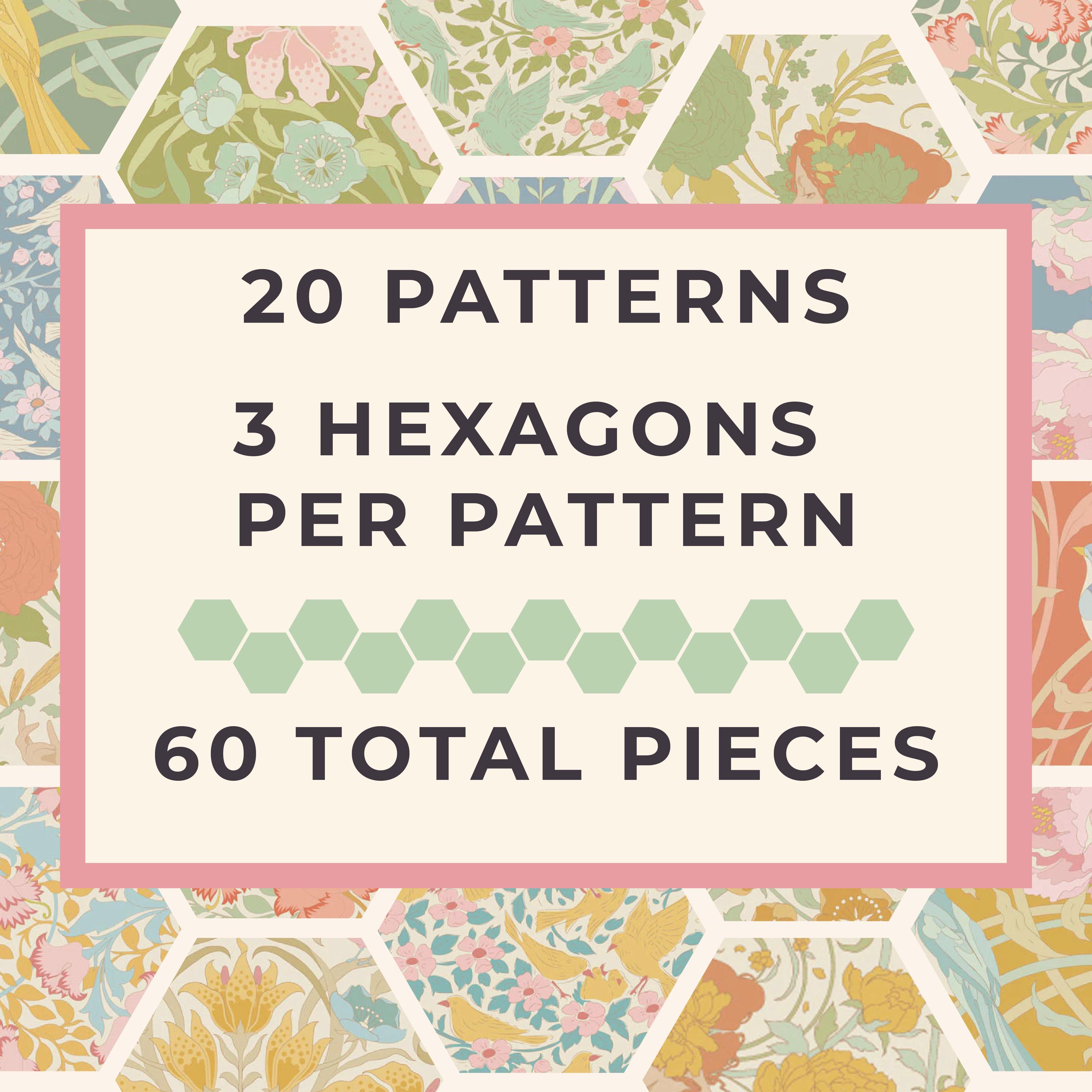 This listing is for a set of 60 hexagons from Tilda Fabrics in Songbird - either 1/4" (.25") or 3/8" (.375").