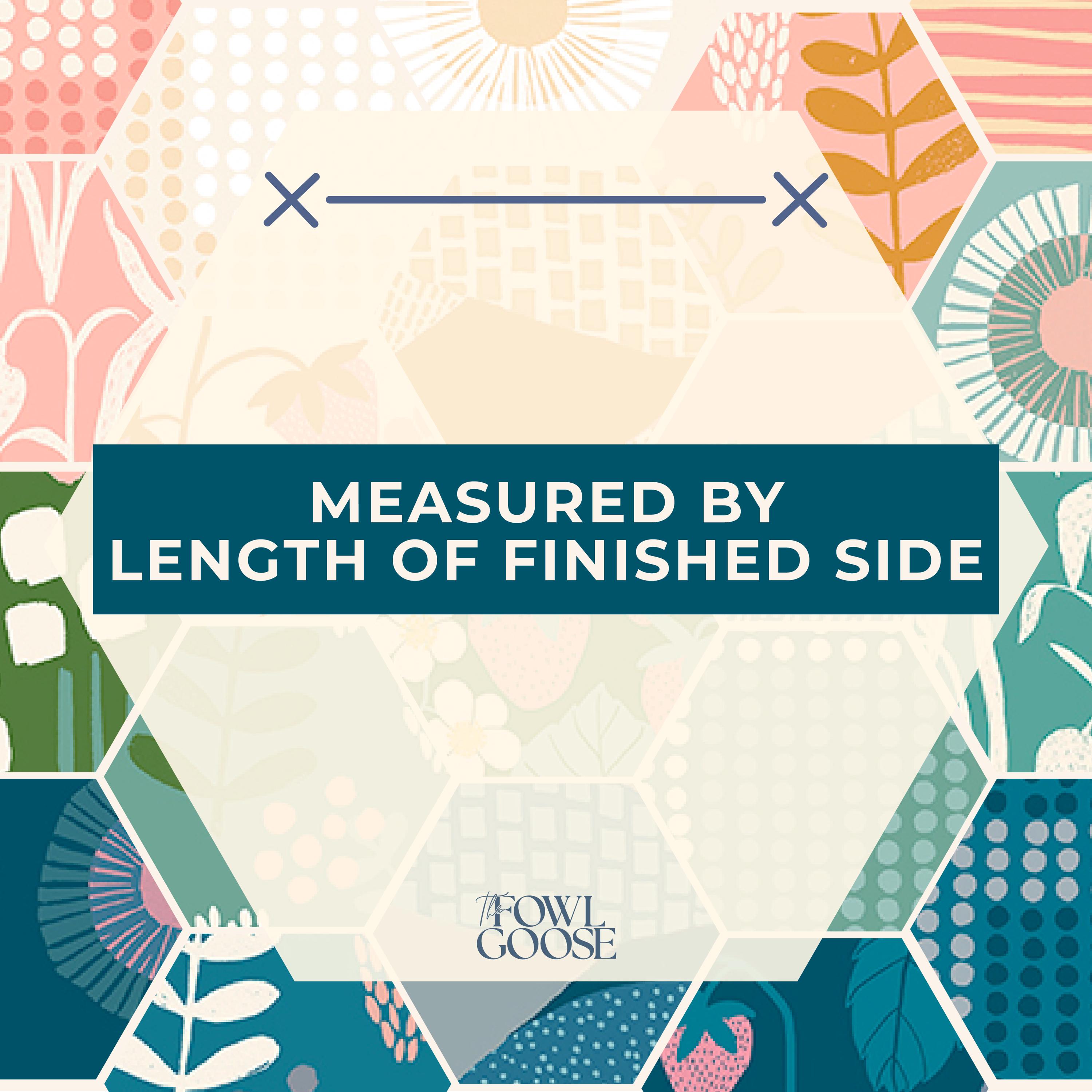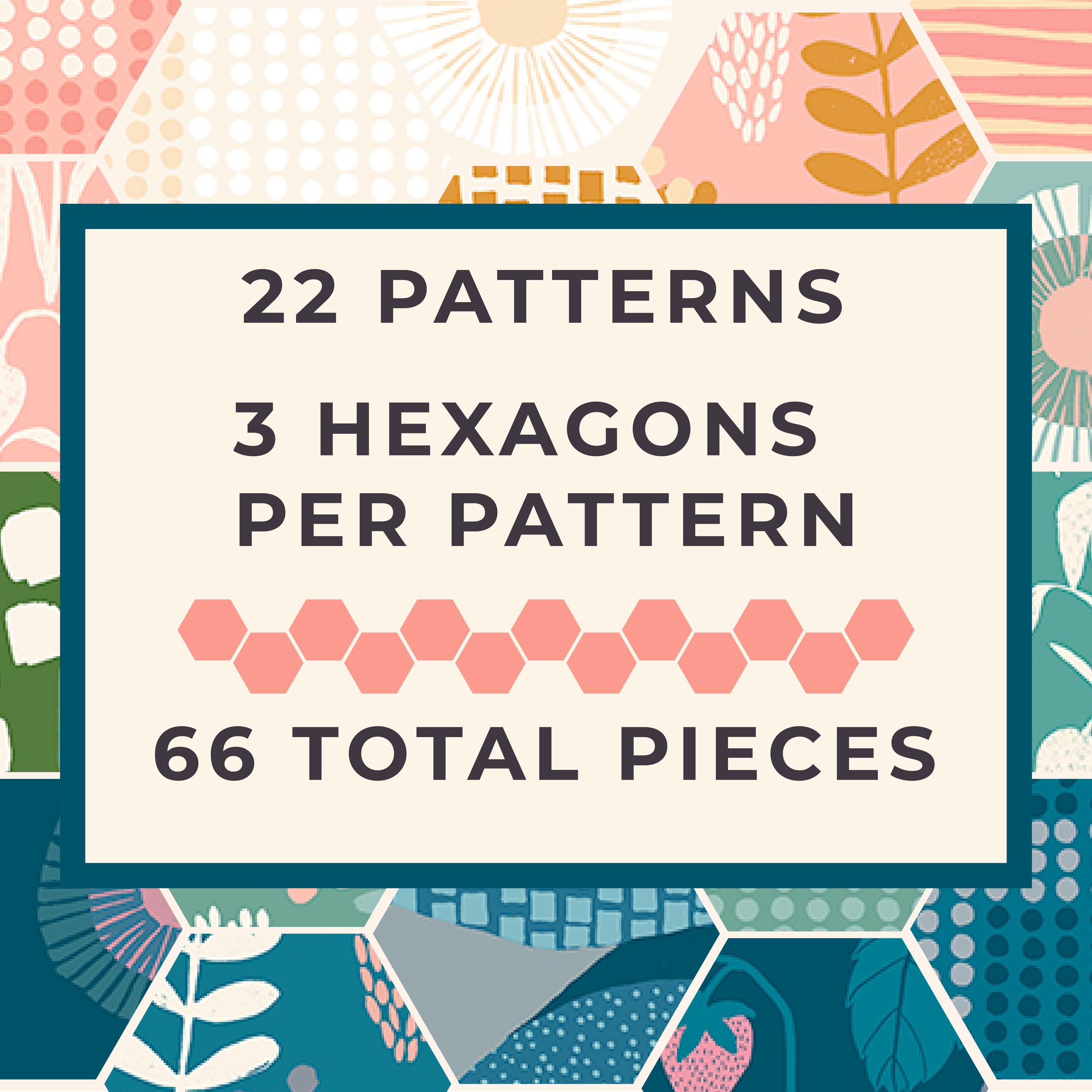 This listing is for a set of 66 hexagons from Ruby Star Society in Reimagined Landscape - either 1/4" (.25") or 3/8" (.375"). You will receive 3 hexagons of each pattern.